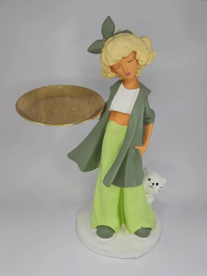 با تندیس دختر میزبان ایستاده نفیس ما، مهمان نوازی و سبک را در آغوش بگیرید. دکوراسیون منزل خود را با زیبایی و ظرافت آن ارتقا دهید و به عنوان یک تجسم ارزشمند از هنر میزبانی در بهترین حالت عمل کند. بگذارید گرمی و زیبایی این قطعه منحصر به فرد، هر فضایی را که با لطف خود زینت می بخشد، غنی کند.