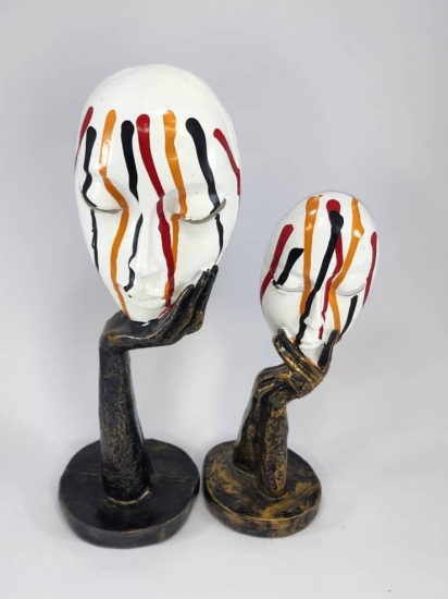 مجموعه‌ای چشم‌نواز از تندیس‌های رخ با رنگ‌آمیزی هنرمندانه که جلوه‌ای خاص به دکوراسیون منزل یا محل کار شما می‌بخشد. این اثر هنری با دو سایز مختلف ارائه می‌شود تا امکان ترکیب‌بندی خلاقانه را فراهم کند.