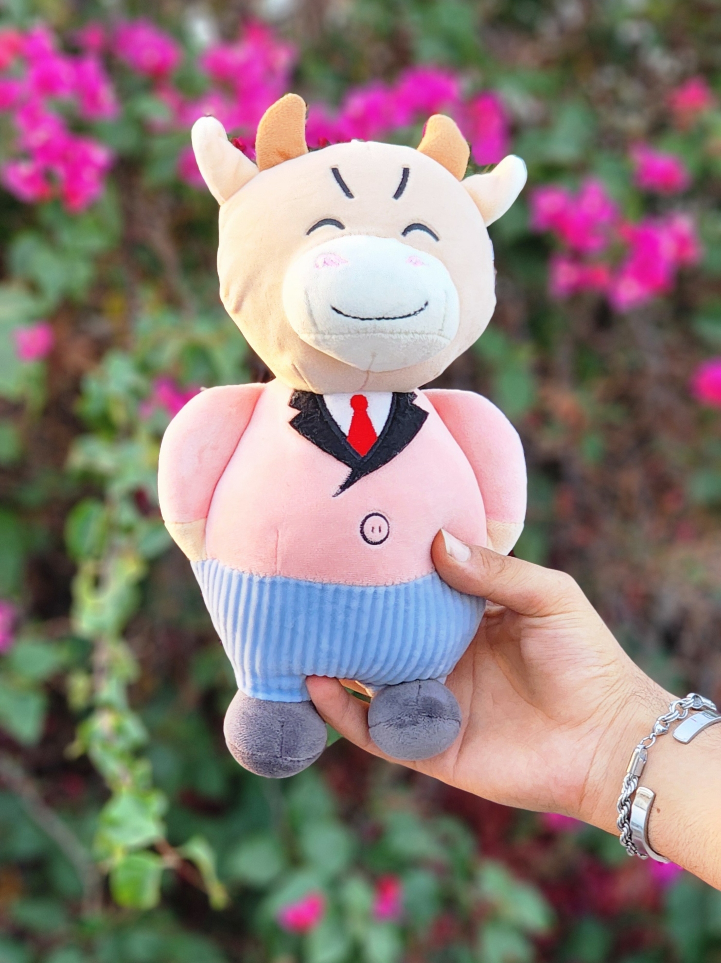 عروسک گاو کراوات‌دار با طراحی فانتزی و کراوات بامزه‌اش، از آن همراه‌های دل‌نشینی‌ست که بی‌درنگ لبخند را بر لب کودکان می‌نشاند. ترکیب رنگ‌های جذاب، چهره خندان و گوش‌های نرم، این گاو دوست‌داشتنی را به گزینه‌ای محبوب برای بازی، نوازش و دکور تبدیل کرده است.