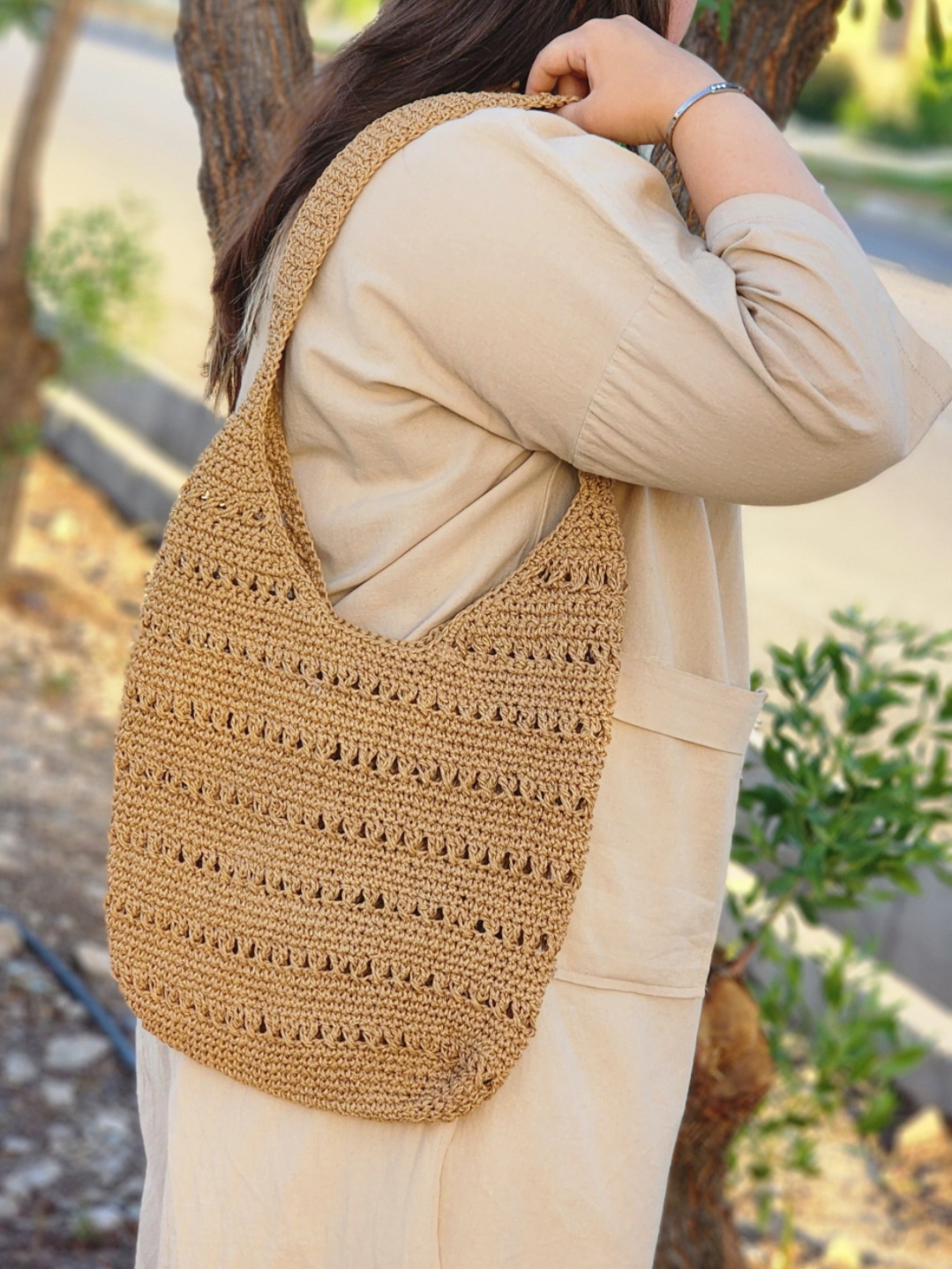 این کیف با طراحی الهام‌گرفته از طبیعت و بافتی متفاوت، همراهی سبک، بادوام و کاربردی برای روزهای گرم سال است. به‌طور ویژه برای استفاده در موقعیت‌هایی مانند خرید روزانه یا رفت‌وآمدهای سبک تابستانی و همچنین تفریحات ساحلی طراحی شده و به‌خوبی با پوشش‌های غیررسمی و استایل تابستانی هماهنگ می‌شود.