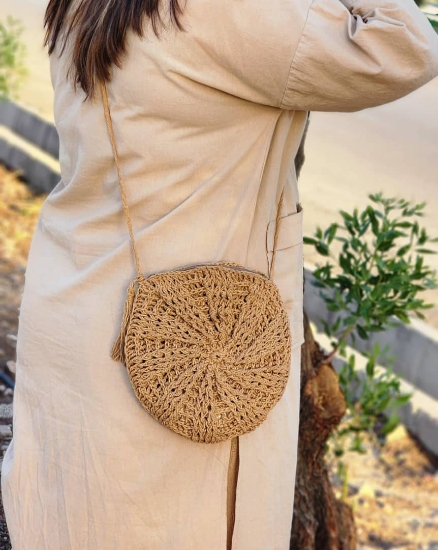 این کیف با طراحی دایره‌ای زیبا و متفاوت، انتخابی خاص و کاربردی برای روزهای گرم تابستان است. فرم گرد و ظریف آن، جلوه‌ای مدرن و در عین حال طبیعی به استایل تابستانی شما می‌بخشد و به‌راحتی به‌عنوان کیف ساحلی یا کیف خرید روزمره قابل استفاده است.